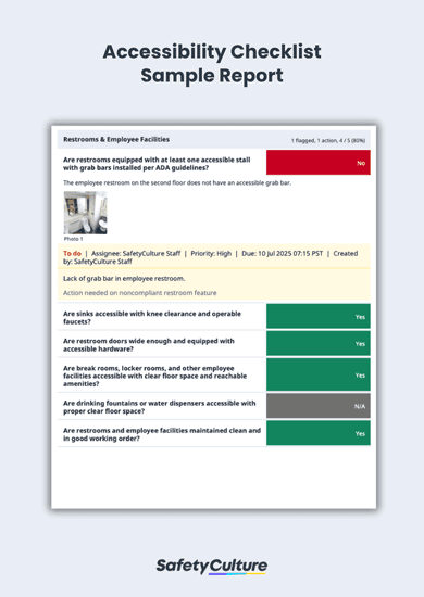 Moreover, an accessibility checklist makes it easier to comply with relevant legislation, as it can be tailored to specific laws such as the Americans with Disabilities Act (ADA), the Accessible Canada Act, the UK Equality Act 2010, and the European Accessibility Act. By following these standards, companies create more inclusive, legally compliant environments that protect employee rights, reduce risks, and improve productivity for everyone.