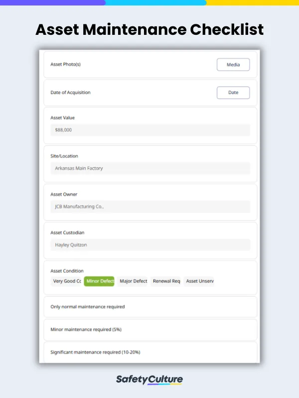 Asset Maintenance Checklist Sample PDF Report | SafetyCulture