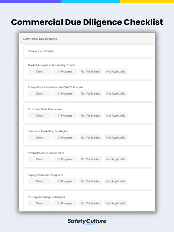 Commercial Due Diligence Checklist Sample Report | SafetyCulture