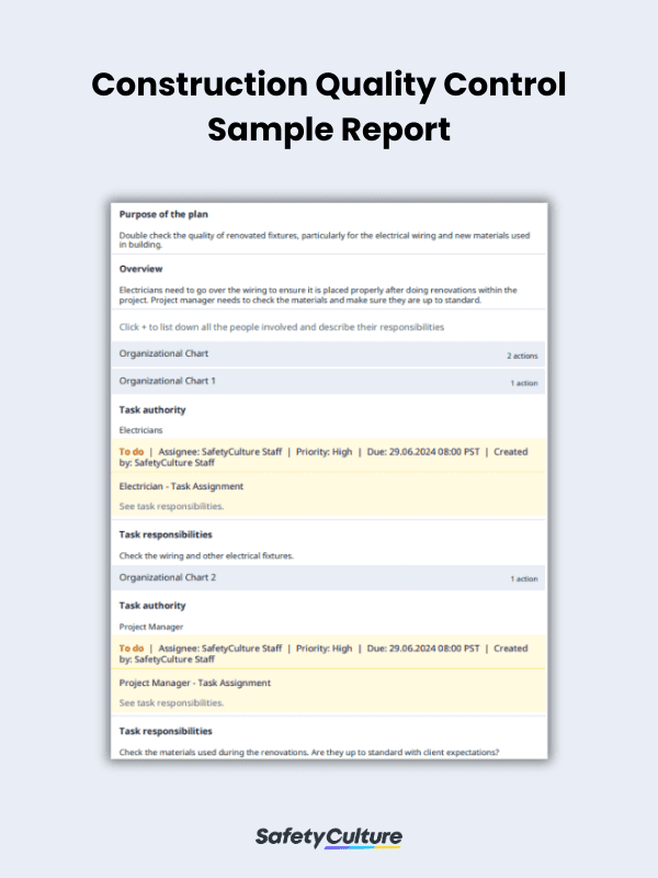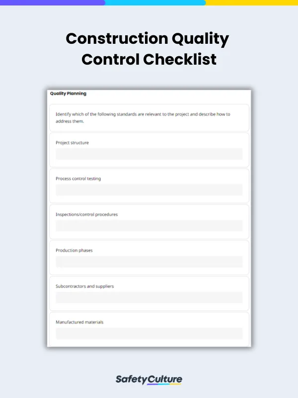 A construction quality control checklist is a pre-made document used to check that all aspects of a construction project meet the specified standards and requirements. It is a crucial aspect of construction project management and serves as a framework for inspecting various phases of the construction process. Moreover, this checklist can be used to ensure compliance with building codes and other regulations needed to preserve safety while on site.
