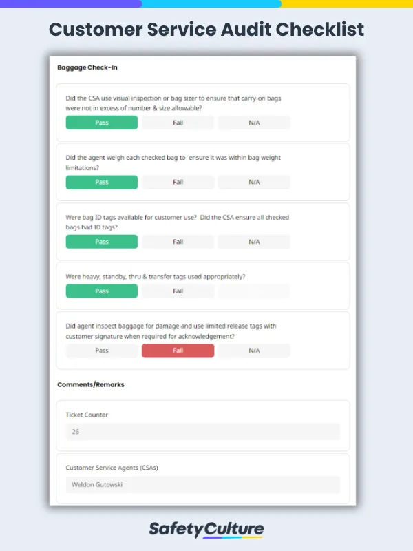 A customer service audit checklist is important to identifying specific flaws and areas for improvement that may be hard to find otherwise. Customer service agents in various sectors like the airline industry roles such as airline CSAs where compliance to security measures must be strictly followed on top of having a positive customer satisfaction.