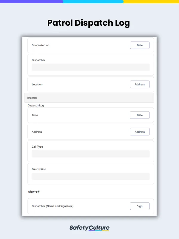 A dispatch log is a recorded document of personnel that has been sent off by the organization to deal with tasks, services, or incidents. It is used to track daily dispatch activities within the organization to ensure the timeliness of deliveries and services. It also helps dispatchers to organize personnel’s assignments and schedule.