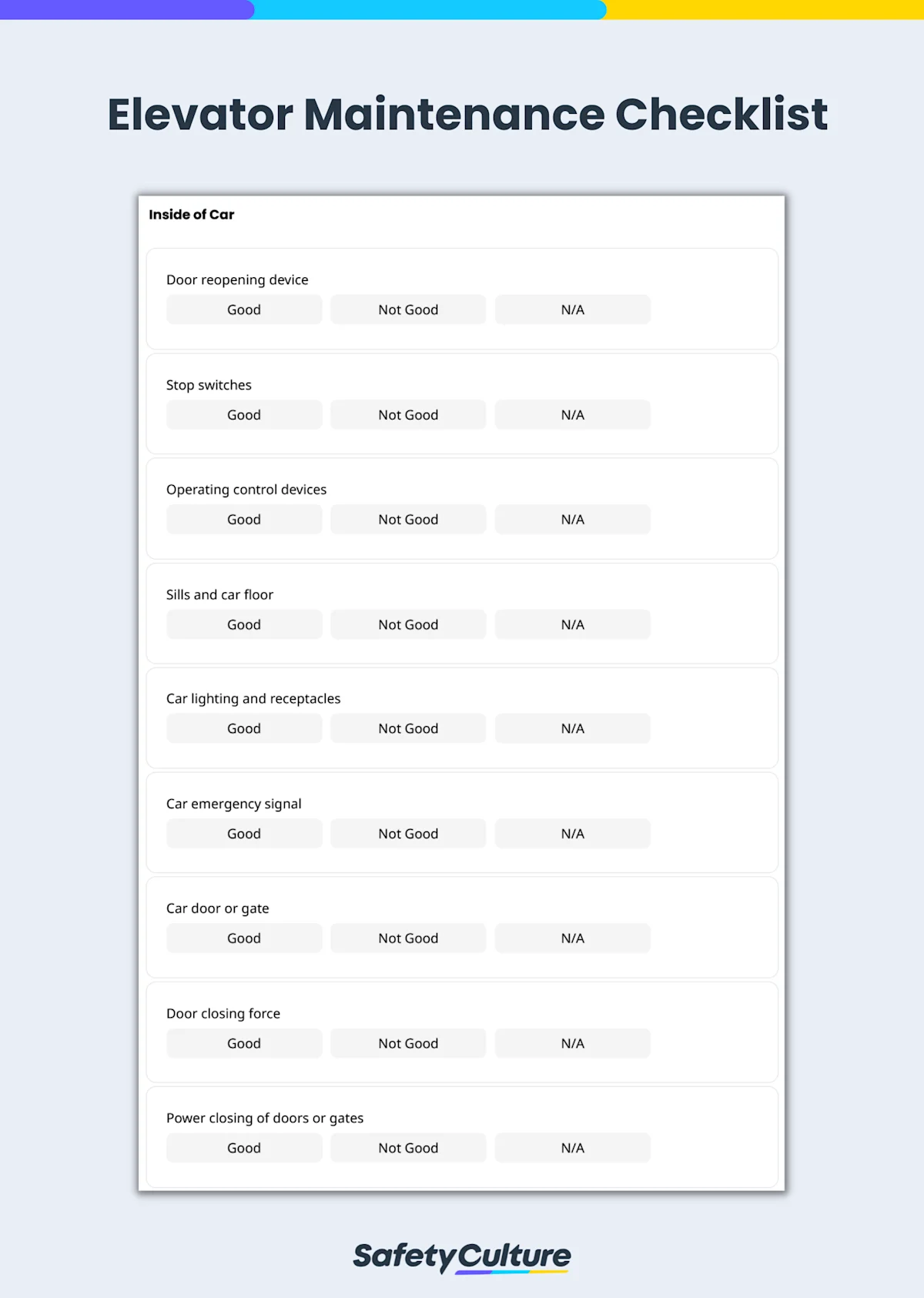 Utilize ready-to-use elevator maintenance checklist that is customizable according to your inspection needs.