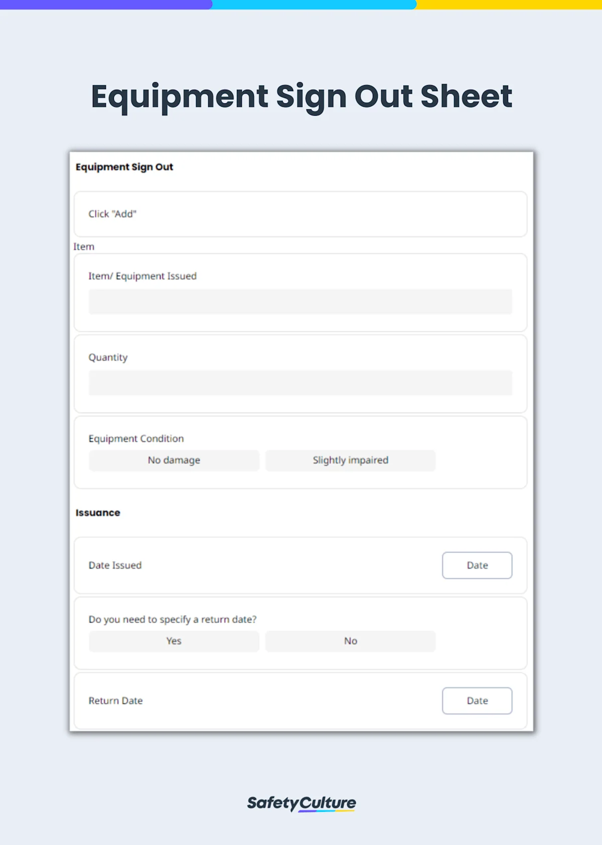 Issuance and/ or Return Dates – Include specific dates for issuance and the date when the item must be returned. This is designed to help with an organization’s equipment circulation.