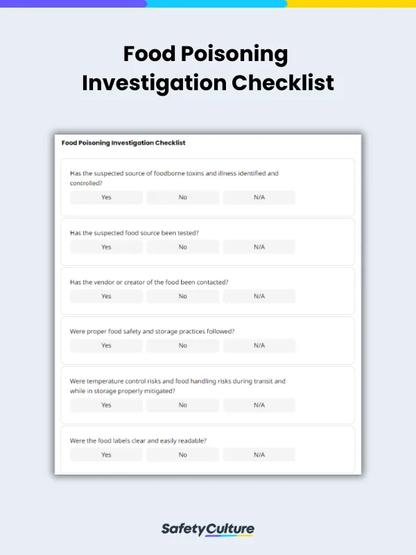 Different organizations will have different ways to investigate food poisoning. However, an effective food poisoning investigation checklist should contain fields for the following: