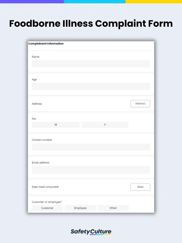 Foodborne Illness Complaint Form Sample Report | SafetyCulture