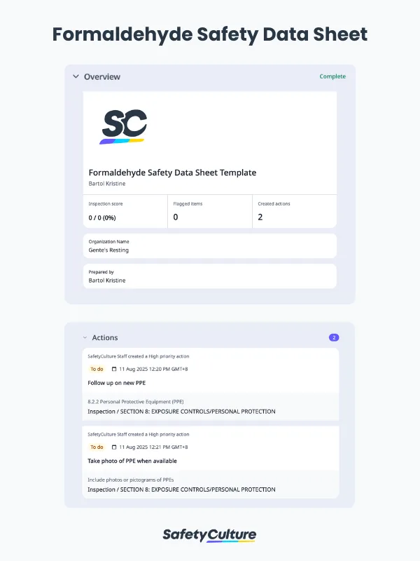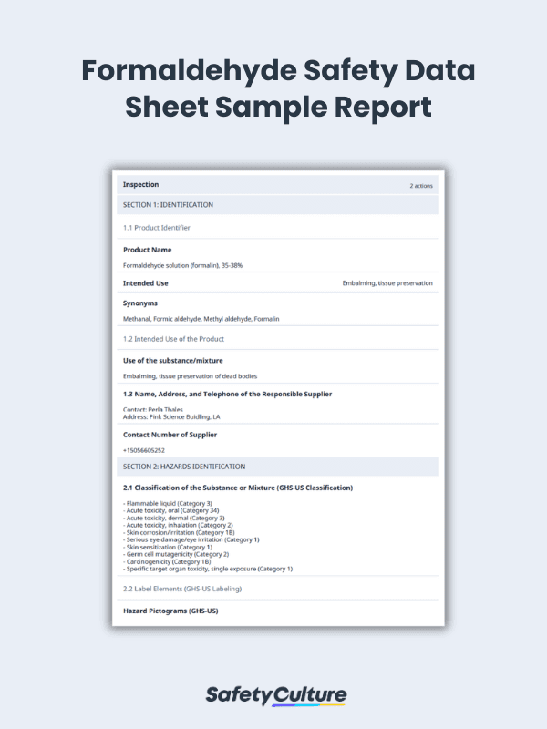 Formaldehyde Safety Data Sheet Sample Report | SafetyCulture