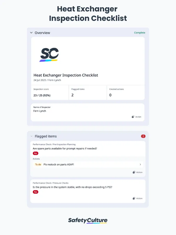 Heat Exchanger Inspection Checklist Sample Report | SafetyCulture