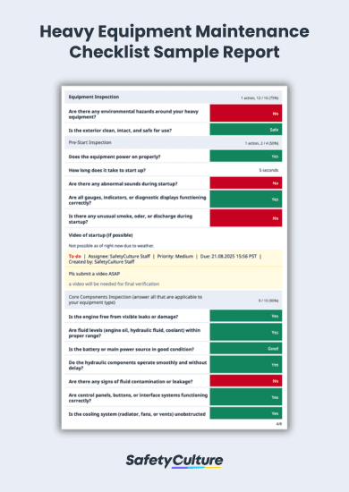 Heavy Equipment Maintenance Checklist Sample Report | SafetyCulture