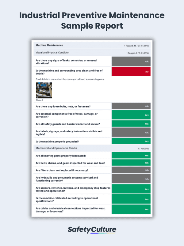 To give a better understanding of what a completed industrial preventive maintenance checklist looks like, here is a sample PDF report:
