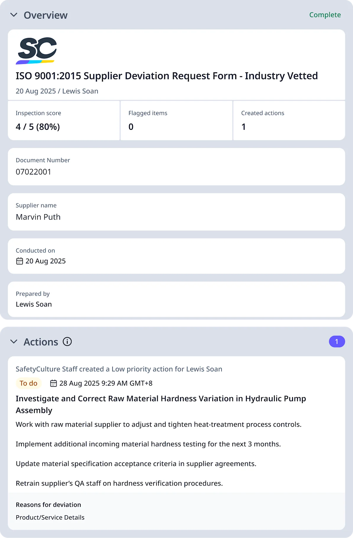 Preview ISO 9001 Supplier Deviation Request PDF Report