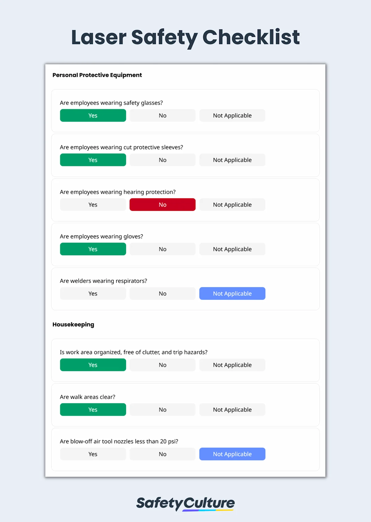 A laser safety checklist is a tool used across various industries such as manufacturing, education, and healthcare to ensure the safe use of lasers for work. Laser Safety Officers (LSOs) perform laser risk assessments to identify laser hazards, enforce appropriate control measures, and reduce the risk of eye and skin injuries.