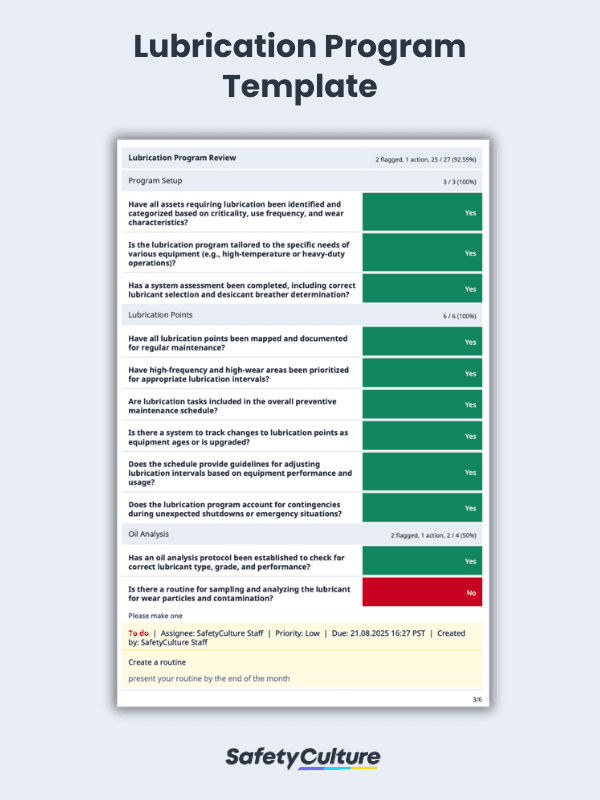 Check this sample lubrication program report when completed using a digital tool:
