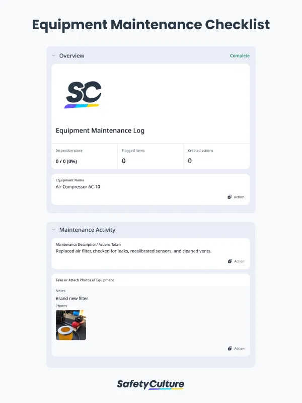 Maintenance Checklist Template Sample PDF Report | SafetyCulture