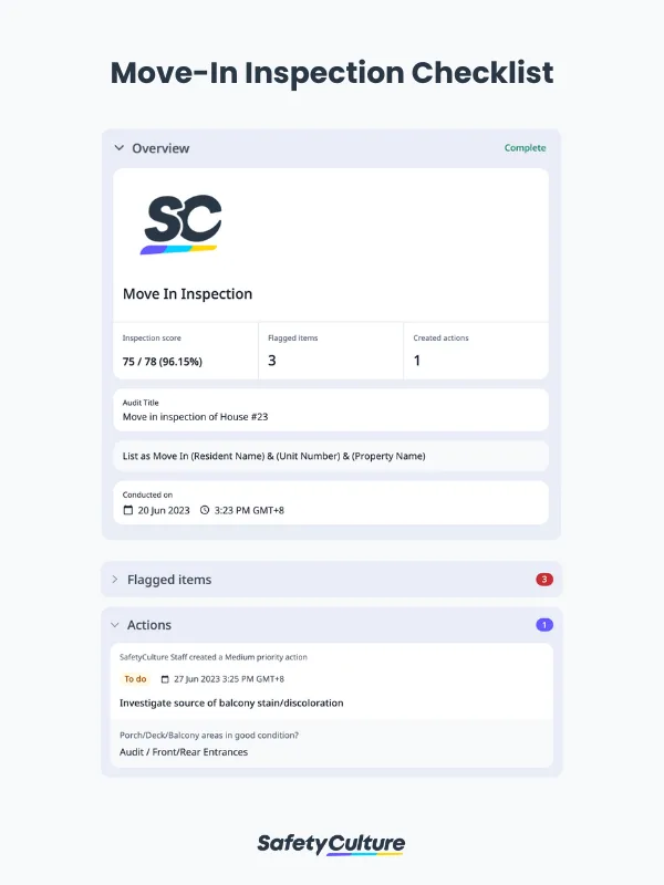 Move In Inspection Checklist Sample Report | SafetyCulture