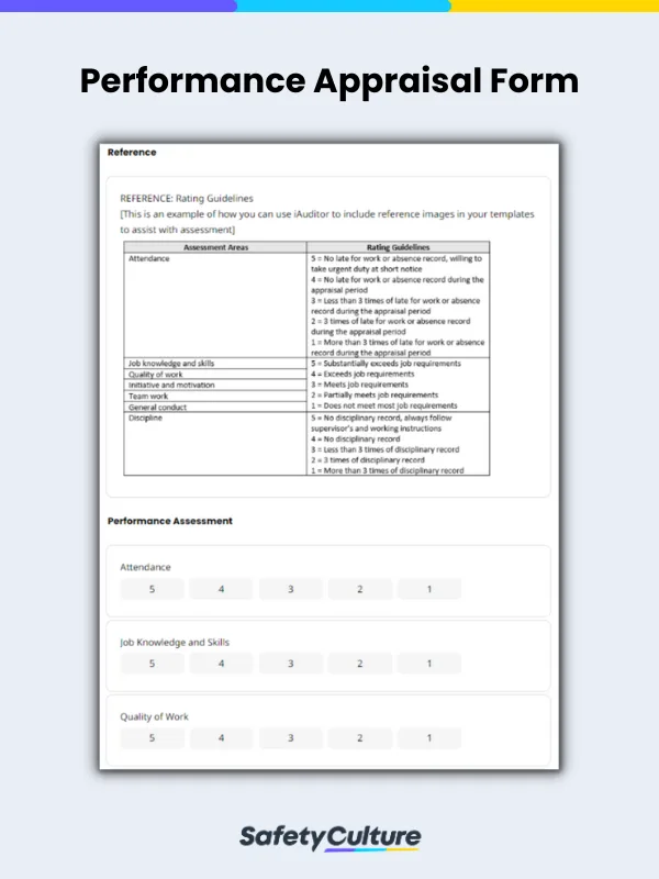 To give you a better understanding, we’ve created a filled-out example of an appraisal form using a digital staff performance appraisal checklist template. This form can be used digitally or as a PDF, while the completed performance appraisal reports can be exported as a web link, PDF, or Microsoft Word document.