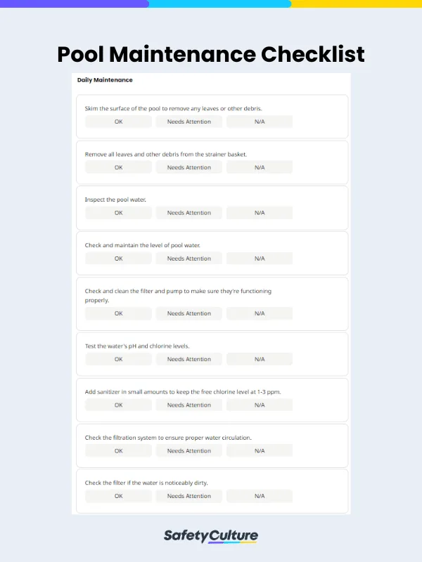 Sample Pool Maintenance Checklist PDF Report | SafetyCulture