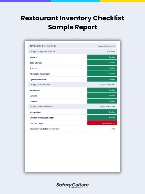 Restaurant Inventory Checklist Sample Report | SafetyCulture