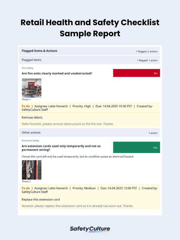 Here’s a filled-out sample of a retail health and safety checklist to see how these components are put together: