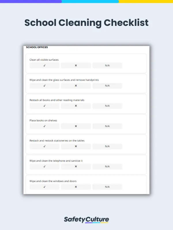 Here is a digital school cleaning checklist example for reference: