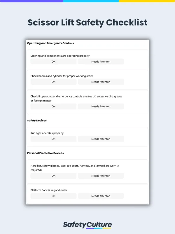 A scissor lift safety inspection is a pre-use and maintenance procedure done to ensure the safety and reliability of scissor lifts.The inspection involves doing a visual assessment of the scissor lift and evaluation of its operating condition. Performing regular scissor lift safety inspections reduces the likelihood of severe injuries and fatalities.