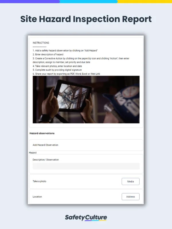 Site inspection reports are valuable tools used to document findings from a visual inspection done in the worksite. These reports summarize risks and hazards identified and preventive controls in place. Creating good site inspection reports help safety officers and managers compile all needed data for safety planning and overall success of the project.