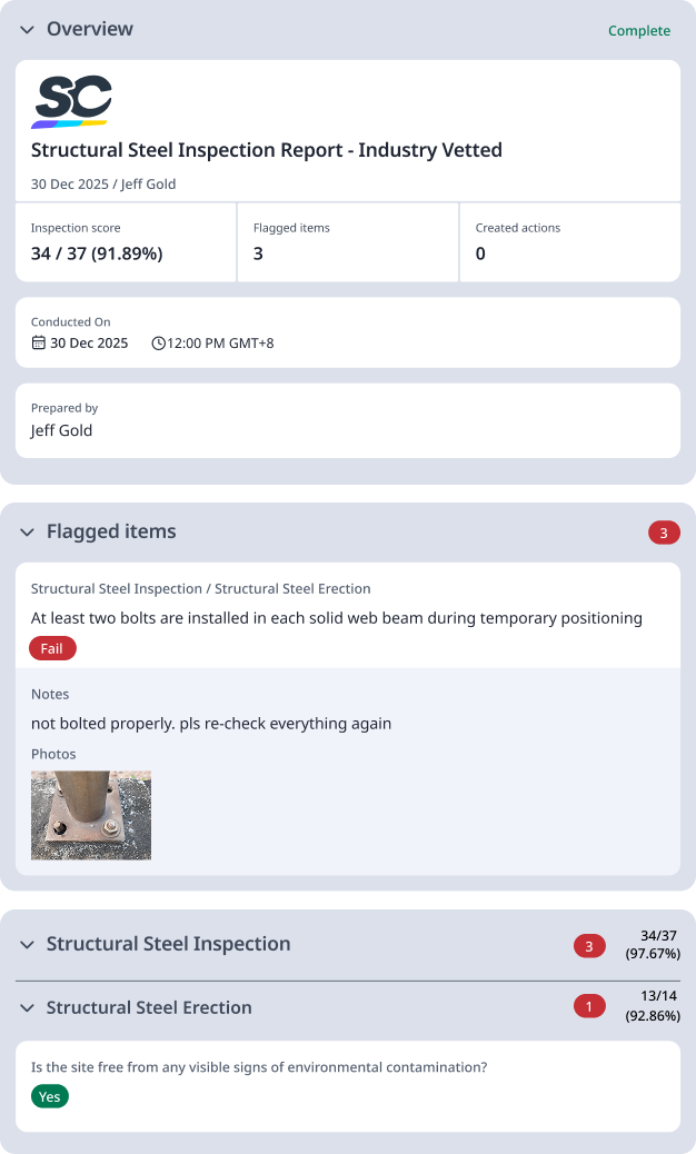 A clear, practical structural steel inspection checklist is what keeps steel structures like buildings and bridges consistent, safe, and compliant. It provides a simple system that makes sure every nut, bolt and material meets the right structural steel standards from pre-installation through to erection. The right structural steel inspection checklist can help teams get ahead of the risks that come with heavy steel work.