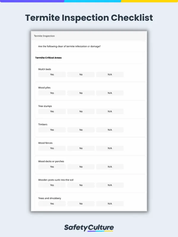 A termite inspection checklist is a valuable tool that guides property managers and termite inspectors during visual checks. It can be used to help ensure that all critical areas of a property are checked for signs of termite infestation and termite damage.