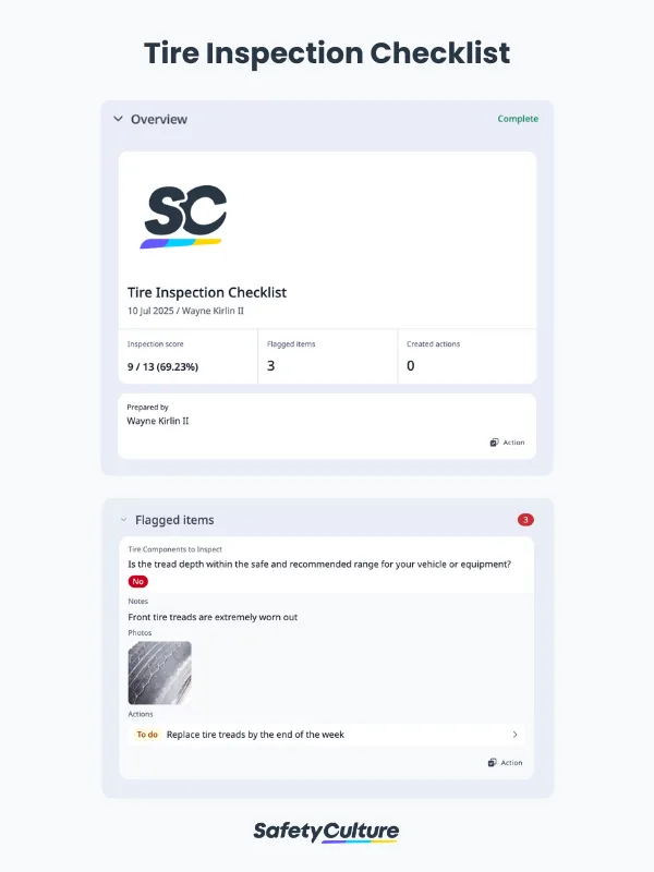 Tire Inspection Checklist Sample Report | SafetyCulture