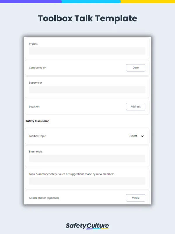 With a templated toolbox talk checklist, it becomes easier to create forms repeatedly, as everything is already in order. In particular, a toolbox talk template can help with the following tasks: