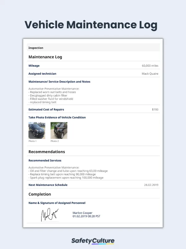 A vehicle maintenance log is a historical record of the condition and repair work performed on an individual vehicle. It is used by commercial fleet owners ranging from small businesses to large transport operators for preventive maintenance, safety, and record keeping purposes. Vehicle maintenance logs can be used to document both maintenance work/ costings as well as general vehicle inspection checks.
