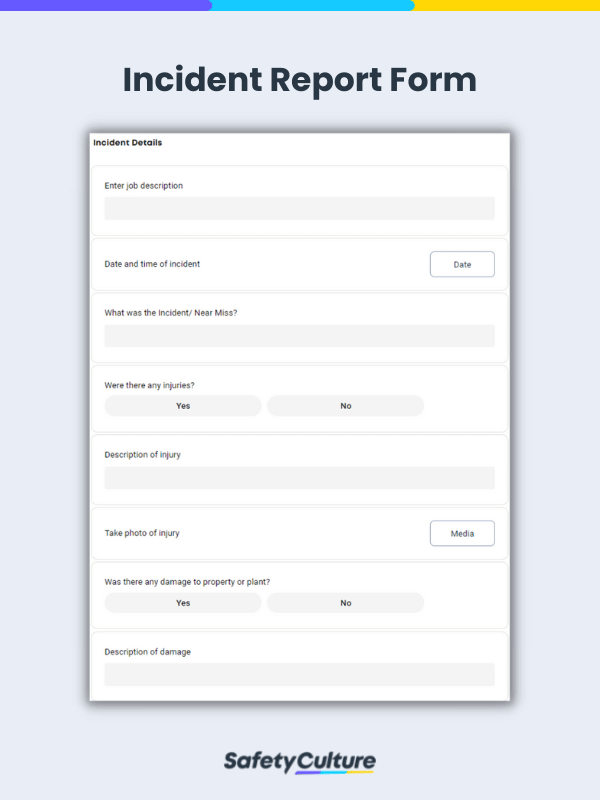 Diese Seite enthält Vorlagen für das Melden von Verletzungen, Krankheiten, Unfällen, Beinaheunfällen, Sachschäden, sowie für Inspektionen von Vorfällen und mehr verwendet werden können.