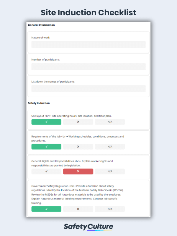 Es ist wichtig, dass die Arbeitnehmer, die mit ihrer Tätigkeit verbundenen Gefahren und Risiken genau kennen, bevor sie ihre Arbeit aufnehmen. Wesentliche Informationen wie Grundrisspläne des Arbeitsumfelds, Arbeitsmethoden, Betriebszeiten und Sicherheitsvorschriften müssen mitgeteilt werden, um unnötige Zwischenfälle und Verletzungen zu vermeiden.