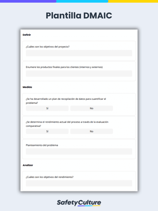 Un buen análisis DMAIC sigue el conjunto de preguntas que se enumeran a continuación: