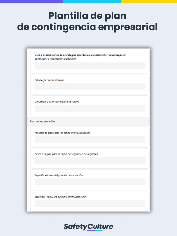 Facilite el proceso de creación de planes : Para que puedas ahorrar tiempo y esfuerzo, puedes utilizar una plantilla de plan de contingencia con la que ya puedas trabajar en lugar de crear uno desde cero.