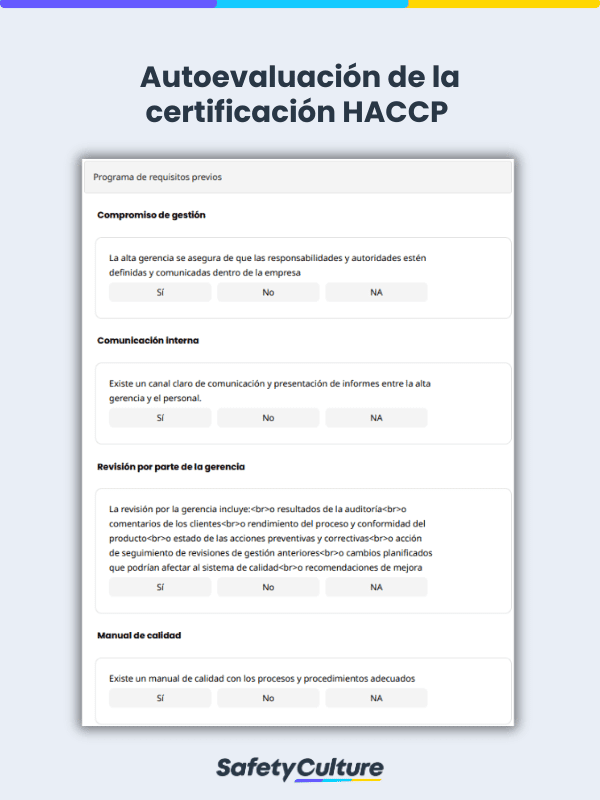 Para obtener la certificación HACCP, una organización debe ir más allá de la creación de un programa de seguridad alimentaria HACCP y examinar otros programas de seguridad previos como la higiene y el saneamiento, el control de plagas y la gestión adecuada de los residuos alimentarios. Dado que el sector de los servicios alimentarios implica el trato con proveedores, distribuidores y otros vendedores, también es vital que las empresas se aseguren de que estas compañías o establecimientos cuentan con programas de seguridad alimentaria y prerrequisitos HACCP similares. Estos son los pasos necesarios para obtener la certificación HACCP: