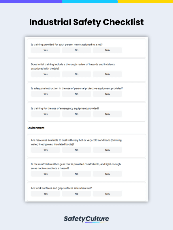 Une fiche de contrôle de la sécurité industrielle est principalement utilisée par les inspecteurs de la sécurité ou les ingénieurs industriels pour garantir la sécurité globale d’une installation dans tout environnement industriel tel que la production, le traitement chimique et l’exploitation minière. L’utilisation régulière de fiches de contrôle de la sécurité industrielle peut aider les inspecteurs à anticiper et à atténuer les risques spécifiques liés au travail dans leurs domaines respectifs et à démontrer facilement la conformité aux règles de sécurité.