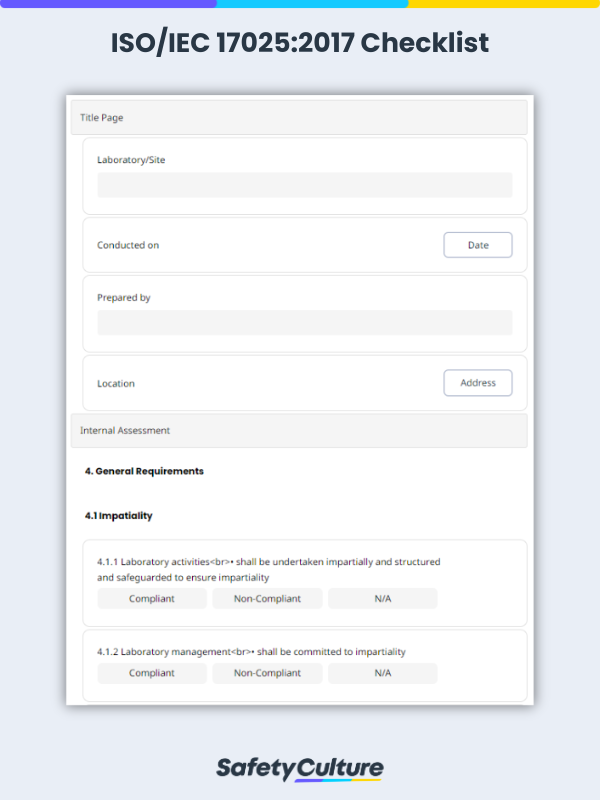 Créez des listes de contrôle ISO 17025 : 2017 prêtes pour les mobiles à utiliser pour les audits internes.