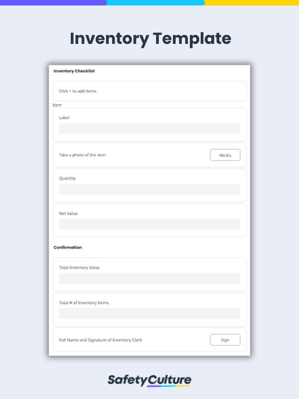 SafetyCulture (anciennement iAuditor) est la première application d’inspection numérique en ligne au monde qui peut être utilisée pour remplacer des tonnes de formulaires d’inventaire papier. Enregistrez les références des produits, la quantité des articles et les coûts totaux. Évaluez la qualité des marchandises. Prenez des photos des articles défectueux. Générez des audits en temps réel, à tout moment et en tout lieu. Téléchargez et personnalisez ces modèles gratuits en fonction de votre liste d’inventaire ou créez votre propre liste inventaire avec SafetyCulture (iAuditor)!