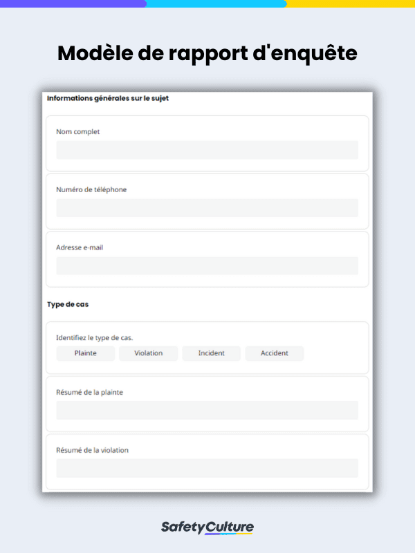 Prévisualisez et téléchargez un modèle de rapport d’enquête ici.