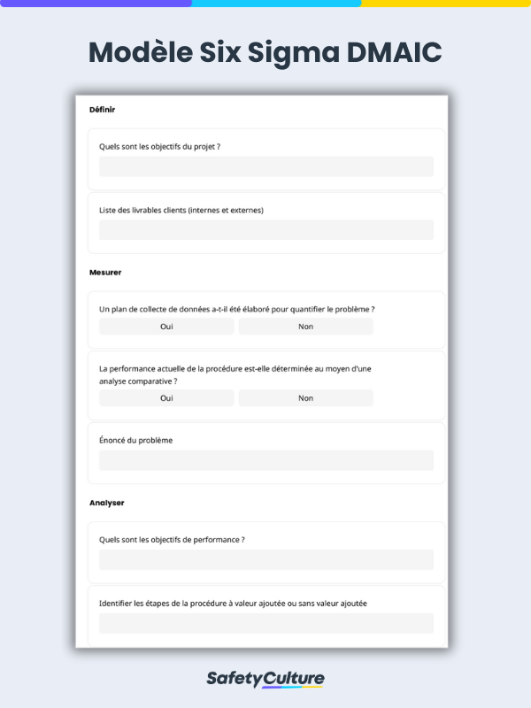 La préparation à la certification Six Sigma n’est pas facile. Elle implique beaucoup de documentation, d’analyse et d’archivage, ce qui est fastidieux pour les praticiens de six sigma. Utiliser un stylo et du papier pour collecter des données et tout réintégrer sur un ordinateur est un processus répétitif et chronophage. Une application mobile d’inspection comme SafetyCulture peut vous aider à suivre l’amélioration des processus et à identifier facilement les gaspillages et les défauts. Avec SafetyCulture, vous pouvez :