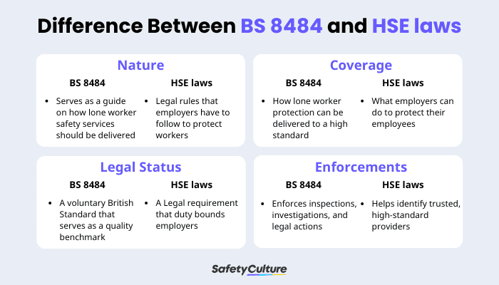 HSE laws and HSW Act, on the other hand, are all legal and mandates employers to protect all workers, in this case including lone workers through proper and reliable safety measures. BS 8484 is like a helpful rulebook for lone worker safety technology, while HSE laws and the HSW Act are the legal rules that employers have to follow to protect workers, including lone workers.
