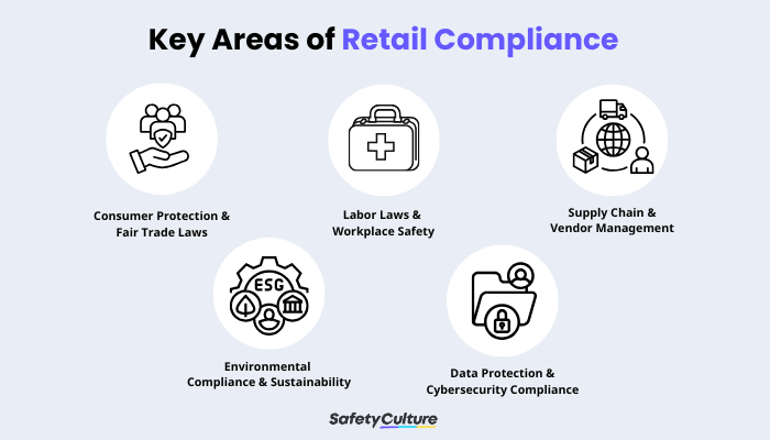 Retail compliance refers to the organization’s adherence to the holistic regulatory landscape governing the retail industry. It ensures ethical, lawful, and efficient business conduct, safeguarding the interests of consumers, employees, and the company. This multifaceted framework includes occupational health and safety, consumer protection, labor laws, data privacy and security, and environmental preservation.