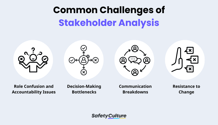 While important to understanding stakeholders, conducting a stakeholder analysis is not easy. There are many challenges that teams regularly encounter with these analyses that you should be familiar with before conducting one yourself. Here are some of the main challenges teams face during a stakeholder analysis: